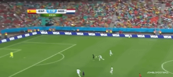比赛第44分钟,本场比赛最精彩的一幕出现!布林德送出长传,范佩西14码处鱼跃冲顶,卡西利亚斯束手无策,眼睁睁地看着皮球掉入网内。谁敢横刀立马,唯我范大将军!