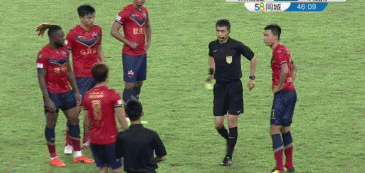 直到第46分钟,主裁与边裁交流后做出改判,将已出示的红牌改为黄牌,叶楚贵又重新回到场上。