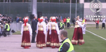 英格兰国家队受到了俄罗斯当地民众的热烈追捧。在三狮军团训练期间,身穿传统服饰的俄罗斯美女为主教练索斯盖特和队员们送上了面包和茶水。