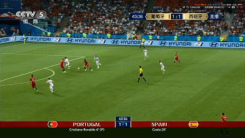 开场之后西班牙并没有很快进入状态,反倒被葡萄牙抓住中场防守速率过慢的问题率先打进一球。随后,西班牙以个人爆破为基础,在左路带动起了有效进攻。