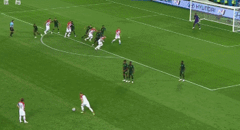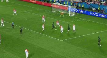 33分钟,克罗地亚搏到角球,斯特里尼奇前点一蹭,小禁区内曼朱基奇俯身冲顶,皮球砸在埃特博身上变向进球,乌龙球!克罗地亚1-0领先。