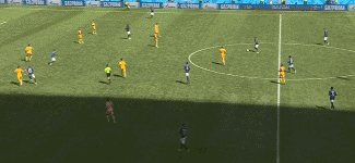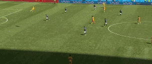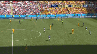 图1:依靠拉开宽度下的不断传递,澳大利亚队破开高位逼抢之后既有边路的快速推进,也有回到高位后的转移换边,还有丢球之后的机动性会抢。这些让人欣喜的变化,让澳大利亚队的进攻取得很好的效果。