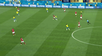 20分钟巴西取得领先,马塞洛传中被第一点解围,库蒂尼奥在大禁区前右脚弧线球兜射远角,皮球击中立柱后弹入网窝,1-0,巴西领先!