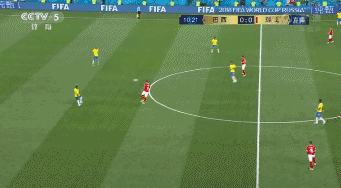 图1:对于巴西队左侧攻击组进行站位限制的同时,增加硬度的逼抢,从上图来看,这种身体对抗让内马尔压力巨大,而且,再加上他全场11次被侵犯,瑞士队的伐木战术可见一斑。