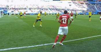 第40分钟,瑞典队获得前场任意球,福斯贝里的射门产生折射后偏出。