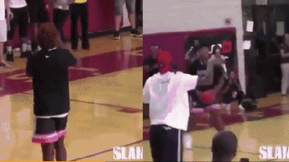 今天詹姆斯的大儿子Bronny在老詹的注视下上演了第一次在公开镜头面前的扣篮。