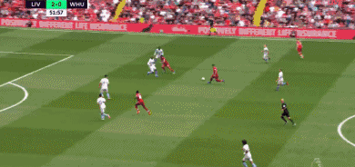 半场结束,利物浦2-0西汉姆。