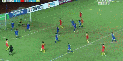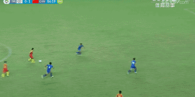 比赛第88分钟,中国队前场抢断后分球至禁区内,赵容得球后轻巧一扣,但随后的射门被门将扑出。