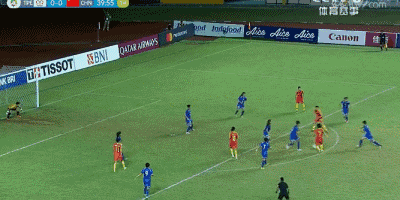 比赛第43分钟,中国队禁区前沿一脚远射,但皮球高出了横梁。