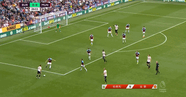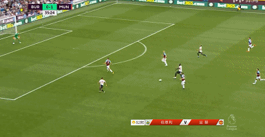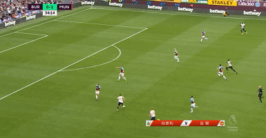 卢卡库的体格和持球对对手禁区本就是比较大的威胁,再加上林加德的游走和覆盖,曼联的进攻就显得更有威胁。图中回合,右路瓦伦西亚助攻上来完成地面地平球的传中,林加德在门前抢到第一个威胁到对手大门。