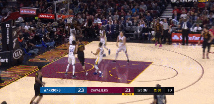 上半场库里可谓是火力全开状态大热,半场6记三分砍下25分,奈何个人的发挥难敌骑士的多点开花,半场结束时骑士64-58领先勇士。第三节杜兰特在最后不足5分钟的时间里命中三记三分一人砍下15分,勇士在第三节完成反超,末节勇士将优势拉大至两位数奠定胜局。