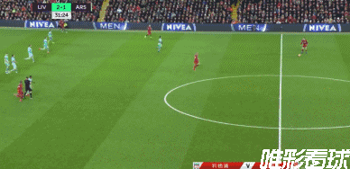 第16分钟,利物浦反超比分,菲尔米诺前场拿球后练过三名球员后点球点前面对阿森纳守门员莱诺低射梅开二度,2-1!