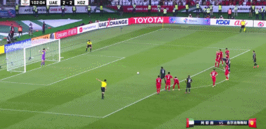 哈利勒将球射向中路,尽管卡迪尔别科夫的脚碰到了皮球但没能将球拒之门外!3-2!阿联酋再次取得领先!
