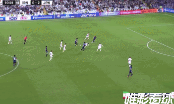 第12分钟,远藤航前场转身直塞,长友佑都套外线插上击穿了伊朗右路防线!直接横扫中路!南野拓实的机会!可惜伊朗中卫补位及时将球破坏掉了!