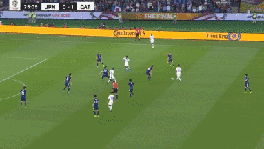 之后,他的传球穿透了两名日本队员的包夹,哈特姆顺势得球后转身兜射直飞球门左下角。值得一提的是这一个进球从助攻到射门都与淘汰韩国队的进球如出一辙。