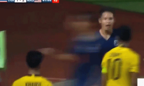 第81分钟,双方在角球区附近发生身体接触,泰国19号球员用拳头捶打对手颈部,被马来西亚另一名球员回击一拳,双方陷入冲突中。