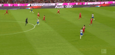 如其所愿,科瓦奇所施展的大力猛攻战术很快就帮助拜仁收获进球,第24分钟,拜仁开出界外球,莱万把球分到右侧,基米希送出直塞球,格纳布里横敲中路,莱万跟上包抄铲射破网。这是一次典型的边路连线中路的倒三角配合。但是,在接下来的15分钟内,拜仁却意外的连丢两球,这两个丢球让拜仁开起来很不走运。