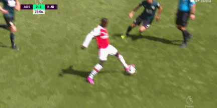 佩佩最出彩的过人是第78分钟,他在中场位置背对对手接球,左脚停球后突然转身,在对方球员上抢的瞬间,重心极低的佩佩左脚顺势拨球,把球从对方的裤裆下穿越,随后扭过对方继续加速带球。伯恩利中卫本杰明-米没有料到对方会有这么一手,被佩佩戏耍之后无奈地双手一摊,呆若木鸡了半天才想起要往回跑。