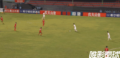 第44分钟,李磊禁区左侧接队友长传头球将球摆渡到门前,杨旭头球后蹭,武磊将球轻松送入球门,2-0中国队扩大比分。
