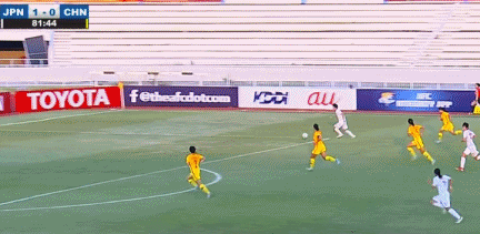 第80分钟,中国队开出角球,皮球被日本门将击出禁区外,中国无法形成二次进攻。