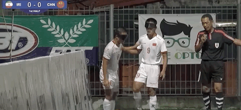 【PS:盲人足球规则与我们印象中的11人制足球有所不同,他们的比赛时间为上下半场各25分钟,中场休息10分钟。进入淘汰赛后,如果打平则加时10分钟,再打平则罚点球决定胜负,但守门员不得参与罚球。】
