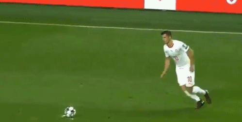 瑞士队获得前场任意球后,扎卡与利希施泰纳同时站在了主罚点。扎卡先是一个假跑,看上去似乎想让身后的利希施泰纳主罚。