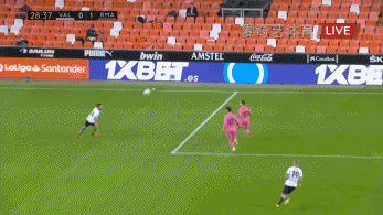 第29分钟,瓦伦西亚球员加亚左路传中,禁区内的巴斯克斯在封堵时手球犯规,主裁判吹罚点球。随后索莱尔主罚点球被库尔图瓦扑出,穆萨补射破门,由于穆萨提前进入禁区点球重罚,索莱尔将点球罚进,帮助瓦伦西亚1-1扳平比分。皇马右边后卫位置上卡瓦哈尔、奥德里奥索拉、纳乔等球员先后受伤,巴斯克斯只能回撤客串,但他毕竟不是正宗的后卫,在防守中出现了这种手球犯规。