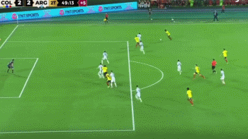 下半场开场哥伦比亚连换三人,卡多纳、博尔哈和巴里奥斯换下路易斯-迪亚斯、萨帕塔和奎利亚尔。47分钟梅迪纳肘击尼古拉斯-冈萨雷斯被黄牌警告。49分钟奥塔门迪禁区内肘击乌里贝被吹黄牌加点球,穆里尔将球推入球门左下角。1-2,哥伦比亚扳回一球!