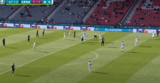 第34分钟,扬克托右路传中,洛夫伦与希克在禁区内争抢时相撞,随后希克满脸是血倒在禁区内。主裁判在查看VAR之后判定洛夫伦肘击犯规,对其出示黄牌,并判给捷克队一个点球。挂彩后的希克亲自主罚推射左下角命中,1-0!希克也凭借三粒进球暂时登顶本届欧洲杯射手榜榜首。半场战罢,捷克暂时1-0领先克罗地亚。