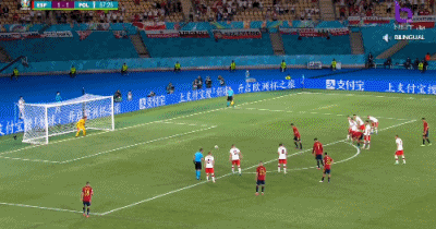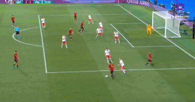第25分钟,莫雷诺在禁区内右侧的斜塞,莫拉塔在禁区中路得球后起脚抽射,皮球入网,但是主裁示意莫拉塔越位在先进球无效,而视频裁判在观看视频回放后认定莫拉塔没有越位,进球有效,西班牙1-0波兰。