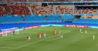 第42分钟,维尔通亨后场长传,卢卡库背身回传,德布劳内弧顶接球被格雷罗破坏,默尼耶横传左侧,小阿扎尔禁区前起脚远射,皮球直挂球门远角入网,1-0。