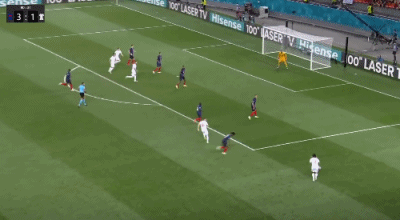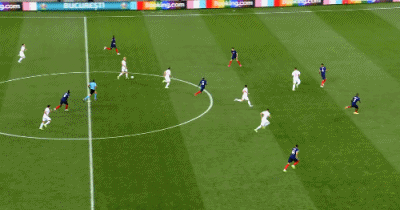 第90分钟,扎卡中路精准直传,加夫拉诺维奇禁区前沿晃过金彭贝,右脚冷静远射破门,3-3!瑞士队神奇的最后时刻扳平比分!补时最后时刻,西索科右路传中,科曼右脚抽射踢在了横梁上!常规时间战罢,法国3-3瑞士,比赛进入到加时赛中。