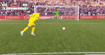 点球大战第一轮,切尔西的阿隆索和利物浦的米尔纳都命中,总比分1-1。第二轮,切尔西的阿斯皮利奎塔的点球被立柱挡出,利物浦蒂亚戈命中,总比分利物浦2-1。第三轮,切尔西里斯-詹姆斯罚进,利物浦菲尔米诺命中,总比分利物浦3-2。第四轮,切尔西巴克利命中,利物浦阿诺德也命中,总比分利物浦4-3。第五轮,切尔西若日尼奥命中,利物浦马内点球被门迪扑出,总比分4-4。第六轮,切尔西齐耶赫命中,利物浦若塔也命中,总比分5-5。第七轮,切尔西芒特点球被阿利松扑出。齐米卡斯罚进,利物浦最终总比分6-5战胜切尔西夺冠。
