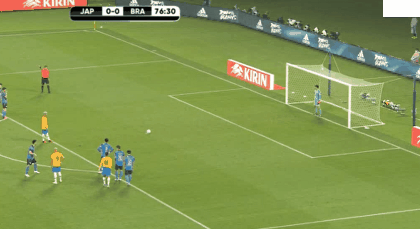 第75分钟,内马尔射门再度被权田修一扑出,理查利森试图补射时被远藤航绊倒,主裁吹罚点球。第77分钟,内马尔主罚点球命中,巴西1-0领先日本。
