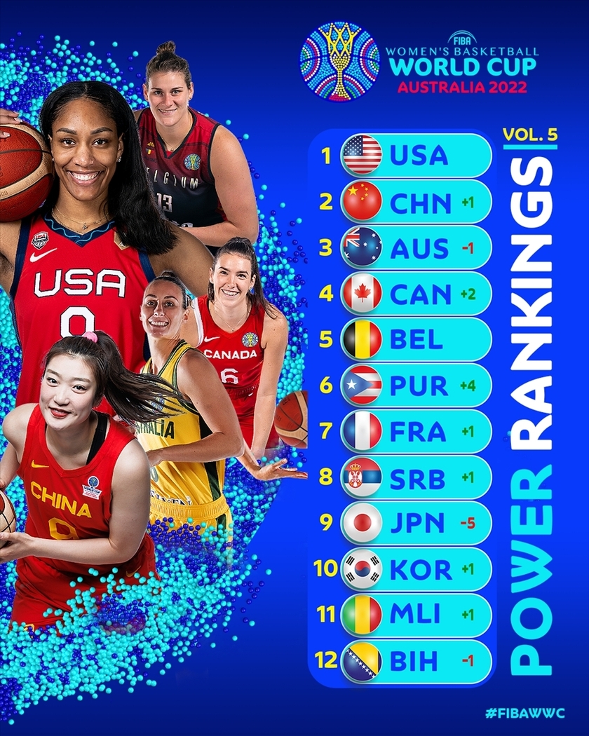 nba直播讯 FIBA官网更新了女篮世界杯球队实力榜,中国女篮超越东道主澳大利亚升至第二,美国女篮稳居榜首,日本和韩国分列9、10位。