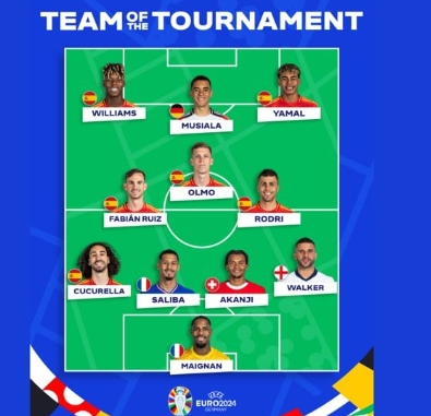 nba直播讯 欧洲杯官方最佳阵容(4-3-3)