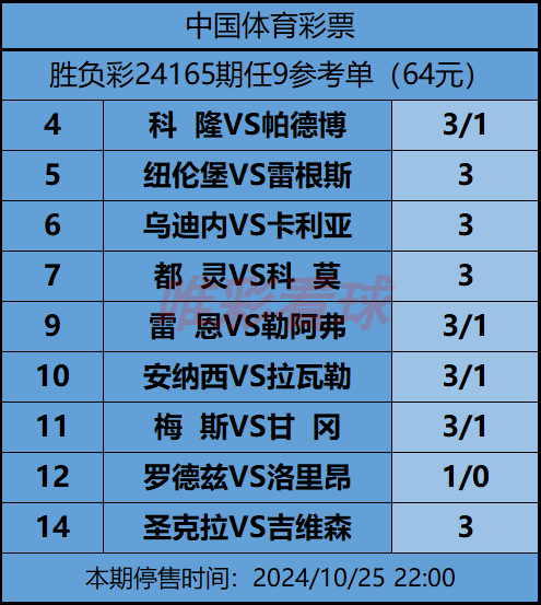 姜山:科隆上轮在客场迎来与达姆施塔特的降班马大战,结果遭遇了1比5的惨败。球队下半场在落后的情况下全面反扑,结果给了达姆施塔特很多反击的机会,最后酿成了“惨剧”。其实这场比赛科隆在客场多少还是占据了场面的优势,但达姆施塔特门将舒恩全场4次救险,为球队立下头功。输掉这场比赛后,科隆本赛季才上任的新帅斯特鲁贝尔前景不太乐观,随时有下课的风险。在降级后,科隆还是留下了上赛季的中卫胡贝尔斯、海因茨,后腰马特尔、柳比契奇、胡塞因巴希奇,前腰凯因茨、边锋迈纳、道内斯等人,并引进了前德国国脚前锋瓦尔德施密特、菲尔特前锋伦珀尔、科隆中卫保利、菲尔特门将乌尔比格等人。上轮球队主力后腰柳比契奇因伤缺阵,本轮恐怕也难以复出。但科隆的问题还是不在后腰上,本赛季主力中卫海因茨状态比较低迷,上轮斯特鲁贝尔将他放在替补席上,启用了替补中卫保利,但后者和胡贝尔斯的搭档更难以让人满意,最终不得不用海因茨将保利换下。另外,上赛季在德甲发挥相当不错的球队中场进攻核心凯因茨也是不受斯特鲁贝尔的待见,已经沦为“铁板凳”,但新加盟的瓦尔德施密特在前腰位置上状态只能算一般,这也限制了科隆的整体发挥。本场比赛,海因茨应该能重返首发,柳比契奇则将继续伤缺。至于帕德博恩,他们在上轮做客0比3不敌凯泽斯劳滕,终结了本赛季德乙开局4胜4平的连续8轮不败纪录。帕德博恩上赛季在德乙拿到第5名,取得了不错的成绩,本赛季他们对冲甲也是有想法的。不过球队目前伤病开始增加,上赛季的主力中卫穆斯利和半主力后腰汉森长期养伤中,主力中场克拉斯最近加入了伤病名单,主力右前卫库尔达本轮累积黄牌停赛,球队人员上存在一定问题。所以这场比赛科隆至少应该是不败的格局,考虑到他们刚刚经历了一场惨败,球队士气可能比较低迷,而且帕德博恩是一支很稳健的球队,轻易不会输球,所以最好还是双选3/1,确保过关。