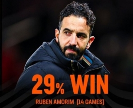 nba直播讯 本轮英超曼联客场0-1不敌热刺,积分榜已经跌落至第15位外媒统计后弗格森时代曼联主帅胜率:阿莫林仅29%垫底,前任哈赫胜率52%,穆里尼奥54%胜率最高。