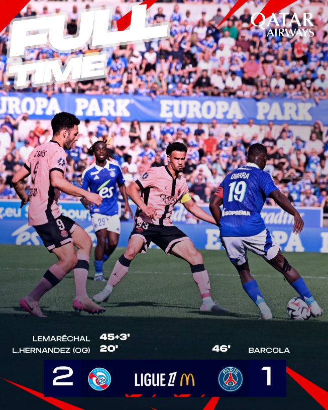 法甲第32轮爆出冷门,巴黎圣日耳曼客场1-2不敌斯特拉斯堡。卢卡斯-埃尔南德斯自摆乌龙,勒马雷沙尔世界波建功,尽管巴尔科拉扳回一球,但大巴黎仍遭遇联赛三轮不胜。