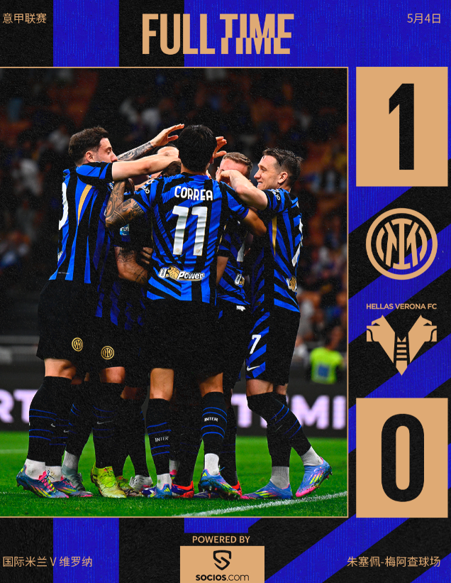 意甲第35轮,国际米兰主场1-0小胜维罗纳。阿斯拉尼点射制胜,帮助蓝黑军团全取三分,继续保持对榜首的压力。