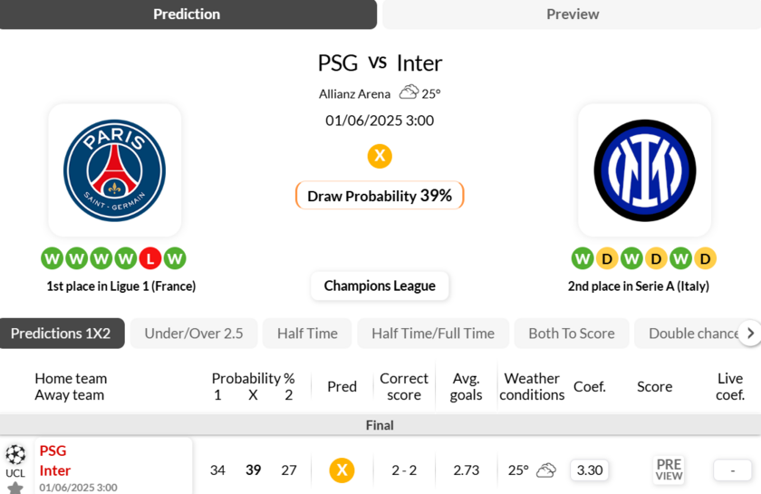 - PSG score an average of 2.38 goals in their home Champions League matches.
