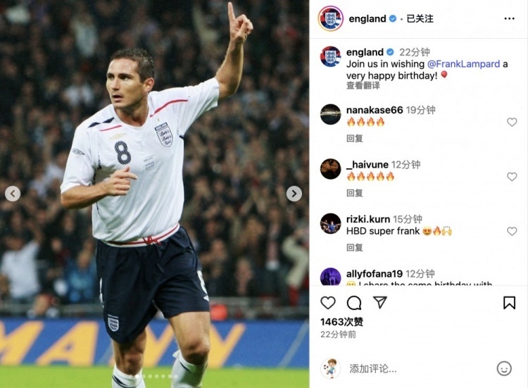 nba直播讯 北京时间6月20日,今天是英格兰传奇球星兰帕德的47岁生日,英格兰国家队官方社交媒体上晒出兰帕德的国家队照片,并写道:“让我们一起祝福兰帕德生日快乐!”