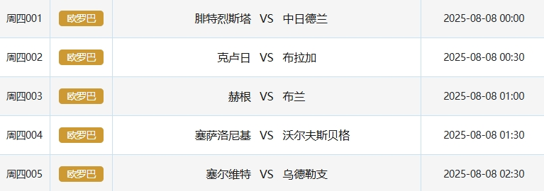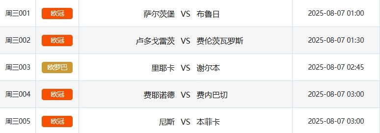 nba直播讯 北京时间8月5日(周二)竞彩将开售2场欧冠资格赛的比赛。8月6日(周三)安排5场赛事,含4场欧冠资格赛,一场欧罗巴资格赛赛事。8月7日(周四)则有5场欧罗巴资格赛待开售。