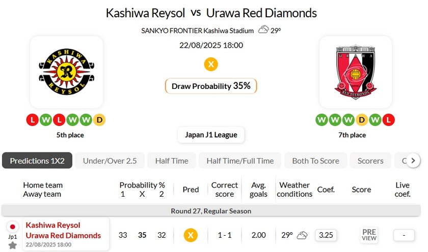 Under 2.5 goals were seen in Kashiwa Reysol's last 4 matches against Urawa Red Diamonds in J1 League