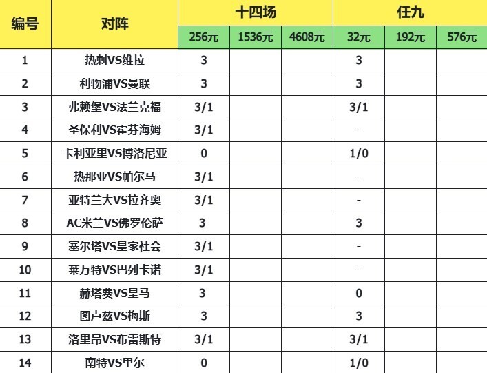 致命14场胜负彩25147期,本期足彩涵盖英超、德甲、意甲、西甲及法甲焦点战。热刺迎战维拉遭遇主力缺阵,利物浦与曼联上演双红会,多场赛事数据波动明显,需结合阵容与数据变化综合研判。