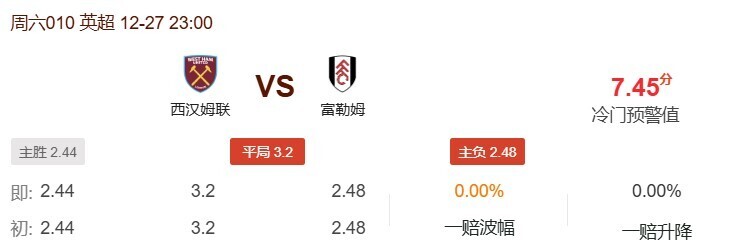 冷门预警:昨日命中12场!西汉姆联能否顶住富勒姆冲击?