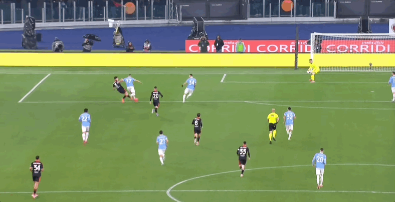 第35分钟:拉齐奥肯尼思·泰勒禁区内踢倒卡奎雷特送点,帕斯主罚被拉齐奥门将普罗韦德尔扑出,错失上半场戴帽机会。