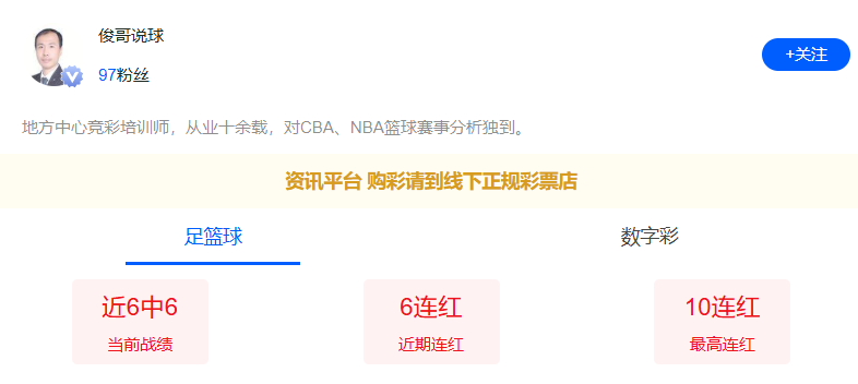 俊哥说球六连红!更多篮球信心场次推荐点点关注不迷路!