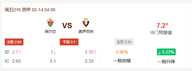 冷门预警赛事分析 竞彩足球单场推荐 nba直播 埃尔切vs奥萨苏纳预测 埃尔切vs奥萨苏纳分析前瞻