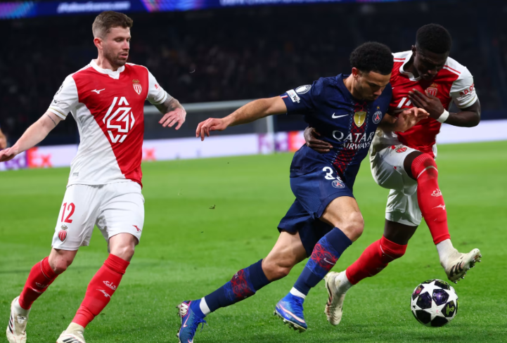 比赛开场后,主场作战的巴黎圣日耳曼占据绝对控球优势,但率先取得进球的却是客队摩纳哥。第45分钟,马马杜·库利巴利送出助攻,阿克利乌什破门得分,帮助摩纳哥在半场结束前取得领先。此时总比分变为4比3,摩纳哥仅落后一球。